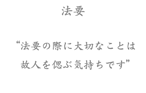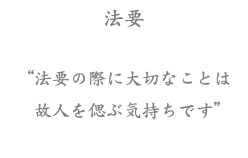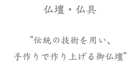 法要 “法要の際に大切なことは 故人を偲ぶ気持ちです” 仏壇・仏具 “伝統の技術を用い、 手作りで作り上げる御仏壇”