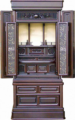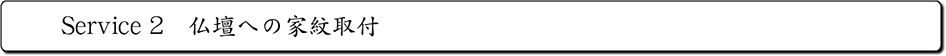 弊社では御仏壇への家紋のお取り付けも承っております。 家紋は、古来よりその家の格式や家柄の象徴として誇りをもって伝えられてきた大切なものです。 お仏壇にも書き入れることによって、より一層親しみを感じることができます。